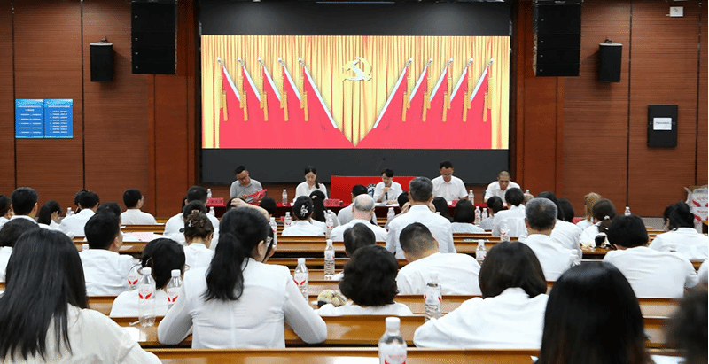 大会在庄严的国歌声中拉开帷幕,全体党员高唱国歌,歌声激昂,表达对党的忠诚与热爱。紧接着打动人心的画面展现在眼前,党委组织委员易菲副院长带领40余名新党员步入前台党旗下庄严宣誓,全体老党员起立面向党旗,重温入党誓词。铿锵有力的誓言在会场回荡,让每一位党员再次坚定了为共产主义事业奋斗终身的决心和信念。接下来党委副书记张广酃宣读了《关于表彰优秀共产党员、优秀党务工作者和先进基层党组织的决定》,对过去一年在工作和学习中表现突出的10名师生优秀共产党员、4名优秀党务工作者和2个先进党支部予以表彰。在激昂的颁奖音乐声中,获奖代表依次上台领奖,现场掌声雷动,这不仅是对获奖者的祝贺,更是对全体党员干部的激励。