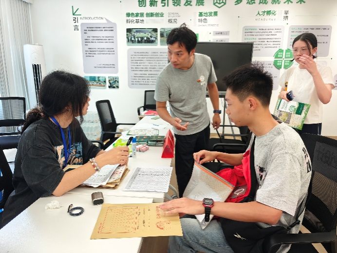 图二 钟振亚老师和王张恒老师协助产品设计新生完成报道流程