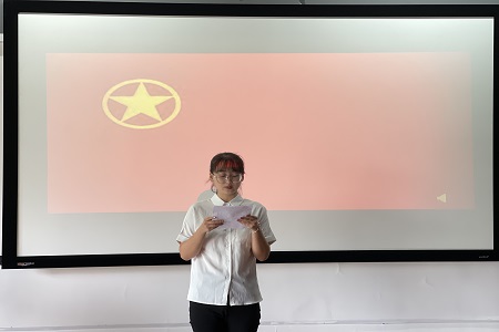仪式在庄严的国歌中正式拉开帷幕。主持人宣读新团员名单,颁发团徽、团员证、入团志愿书;随后,全体团员面向团旗宣誓;而后,新老团员代表发言,表示必将用实际行动谱写青春,坚定青春信念;最后,黄玲老师对新团员的加入表示祝贺,并寄语大家要拥有阳光心态、树立责任意识、培养自主学习能力,做真正有高素质、有利于社会发展的共青团员。