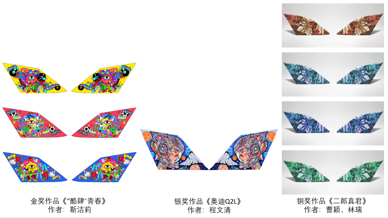此次大赛中,我院学子与来自21所高校的学生同场竞技,激烈角逐,充分发挥独特的创意和个性,用设计打破传统、引领潮流,表达自己不被定义、不受束缚的“酷盖”态度,助力奥迪在年轻化的过程中完成了更深入的一场实践,为品牌注入了年轻的创造力,联袂诠释“解锁我的自定义”。