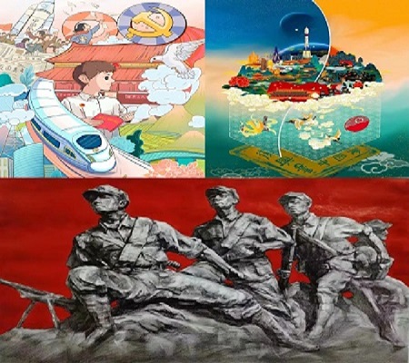 经过两个月的策划、组织及评选工作,评委会最终选出50幅主题鲜明、形式丰富、寓意深远的优秀作品进行布展。作品围绕“革命”“建设”“改革”“复兴”“青年”五个主题,展现中国共产党建党100年来的波澜壮阔史。参赛学生用艺术语言描绘国家从战火纷飞到国泰民安、从贫困潦倒到全面小康的光辉历史,每幅作品都饱含对过去的崇敬,对新时代的赞美,对实现中华民族伟大复兴中国梦的坚定信心。