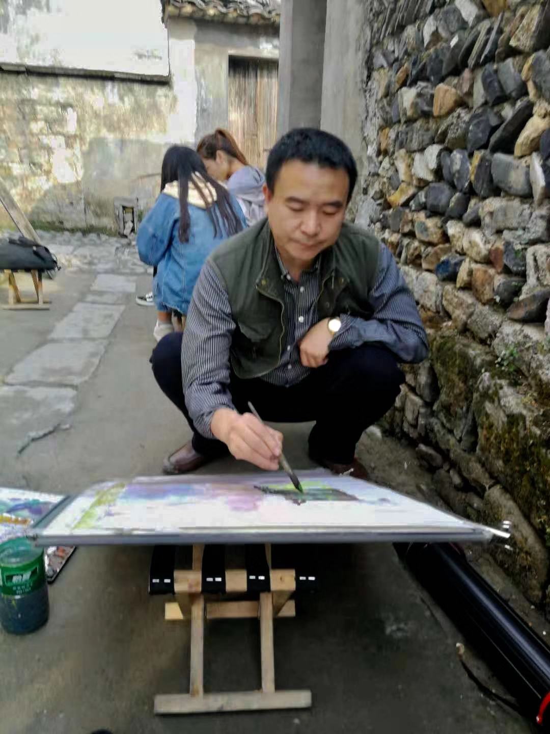 李明老师,毕业于湖南师范大学艺术系国画专业,代表作《陈哥的白菜园》、《秋色》系列、《舟》中的水彩,有着对形和色的高度升华和概括。李老师作品中的水味、色味、笔味、形味都是教学典范,所创作的美术作品多次参加全国及省市各类美术展览并获奖。其中,水彩画《老两口》获得《纪念毛浙东延安文艺座谈会讲话60周年》全国美展湖南展区金奖;他还为舟山市博物馆、东莞国际会展中心创作近二十幅人物历史国画,被其永久收藏。汪长乐、黄铁山等大家称其画作使人声临其境,设色和用笔大胆奔放,既留住了昔日的历史痕迹,也留住了时代的气息。著名作家何顿评论说“李明在水彩画研究上颇有建树,其作品直接亲吻大自然,即使是写生之作,也是一派情深深意浓浓的景象,让你有身临其境的现场感!”