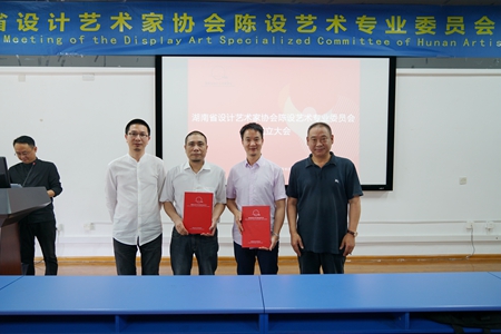 朱道弘副校长代表学校致欢迎词,湖南省设计艺术家协会副主席、湖南师范大学美术学院院长李少波教授代表设计家协会发言,湖南省设计艺术家协会傅忠成副主席代表艺术专业委员会企业顾问发言,协会办公室主任伍琴传达湖南省设计艺术家协会同意陈设委成立文件并宣读第一届陈设艺术专业委员会委员名单,协会副秘书长陈秋伟就《湖南省陈设艺术专业委员会选举:第一届陈设艺术专业委员会筹备工作报告》进行了说明。陈设艺术专业委员会采用双主任制,我院副院长刘文海担任陈设艺术专业委员会主任、造型教研室主任邓莉文担任秘书长。