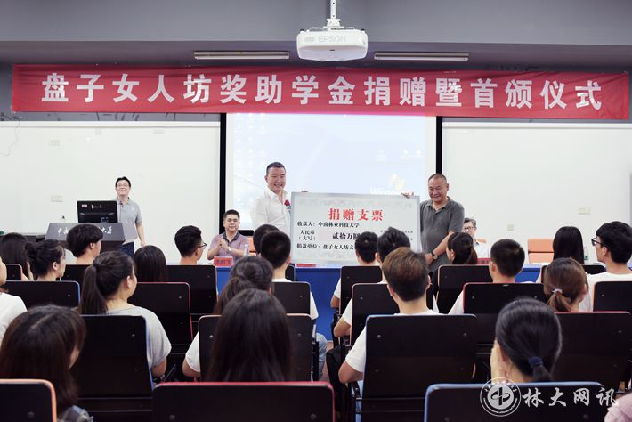7月5日下午,家具与艺术设计学院“盘子女人坊奖助学金”捐赠暨首颁仪式在学院会议室举行。学校副校长陈冬林出席仪式并致辞,我校99届校友盘子女人坊文化产业有限公司董事长杨健、党委学生工作部部长李建兵、家具与艺术设计学院院长刘文金、党委书记李鹏飞以及获奖学生代表共100余人参加颁奖仪式。仪式由家具与艺术设计学院党委副书记何伟主持。刘文金代表家具与艺术设计学院接受了杨健校友捐赠的二十万元善款,该笔款项将分四年颁发给优秀贫困大学生。