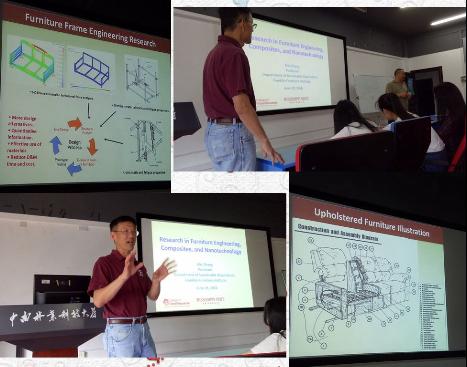 张继雷教授以其教育背景为开端,介绍了美国密西西比州立大学的基本情况,并结合其研究领域介绍了密西西比州的软体家具生产工业的发展。张教授以其风趣、幽默的风格,展示了近年来他的研究团队在软体家具结构及复合材料领域所取得的丰硕成果,并与师生进行了愉悦的交流。本次报告会激发了广大研究生的学术志趣,拓展了他们的知识面和学术视野,取得了圆满成功。